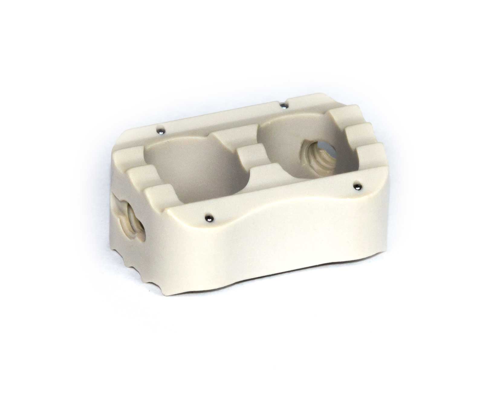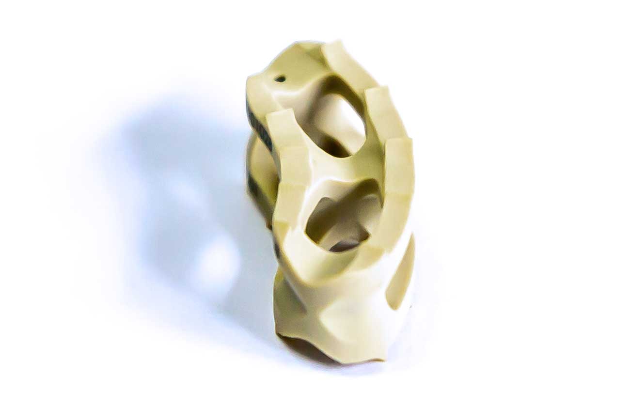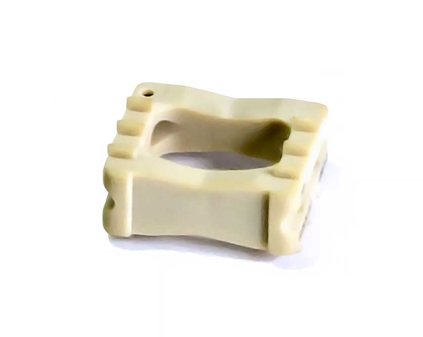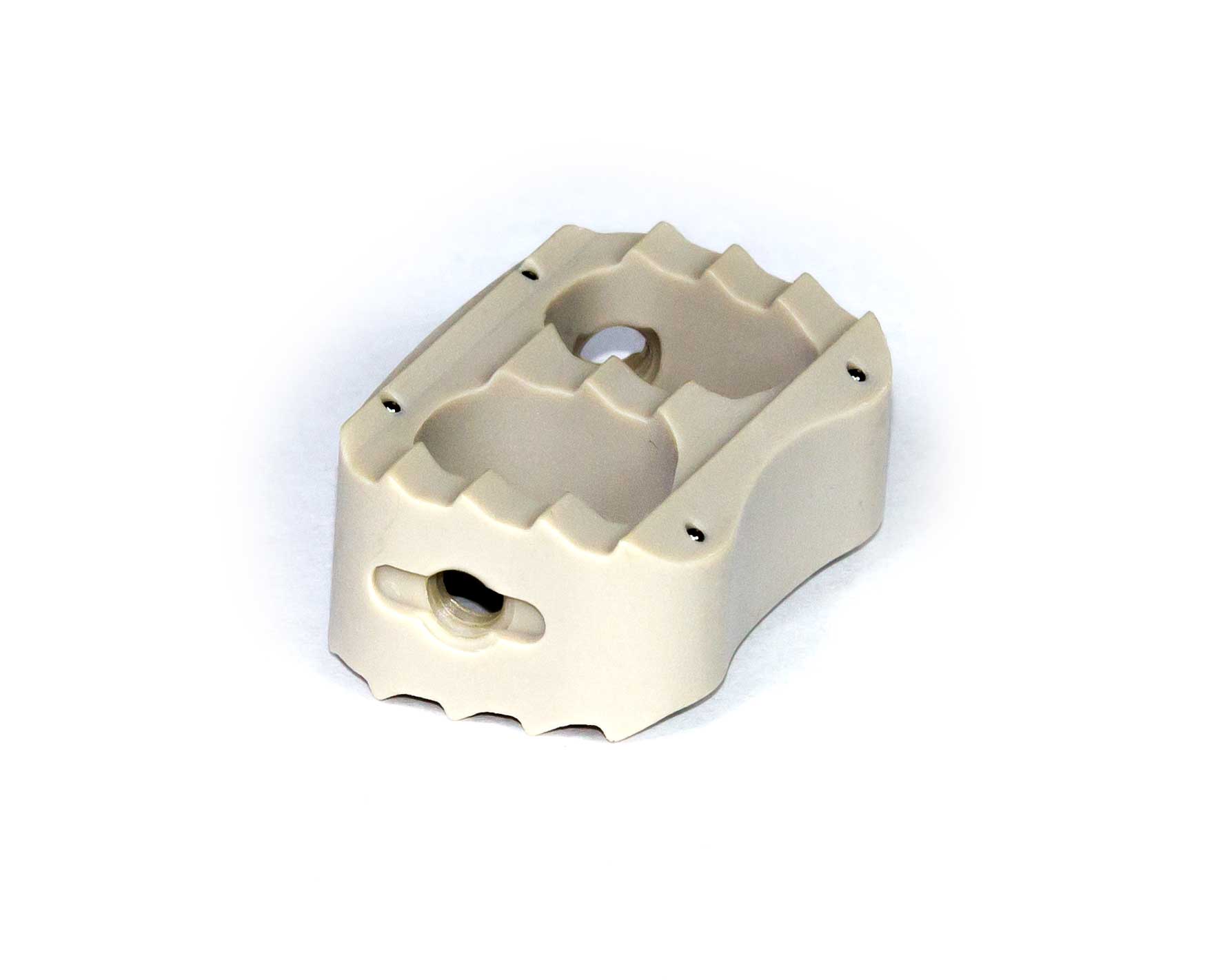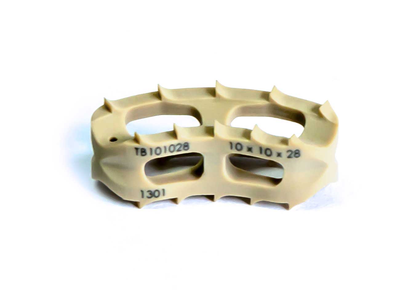 Los bordes del implante tienen barbas mecanizadas diseñadas para sujetar las placas vertebrales e impedir la expulsión.